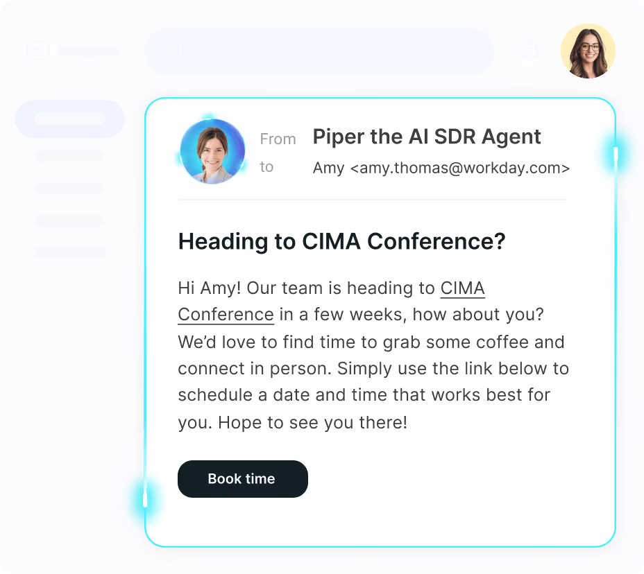 Have Piper reach out to leads for upcoming events so your team can book time and connect in person.