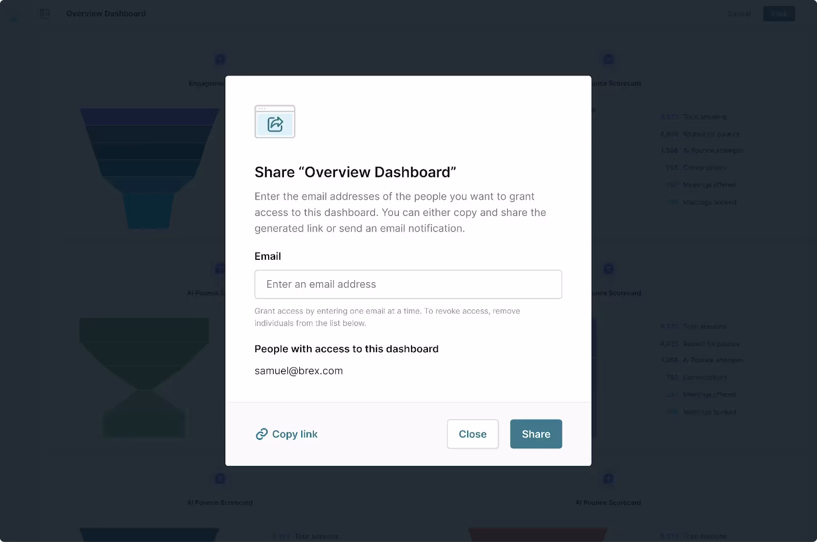 Understanding pipeline performance is crucial; not just for you, but your entire organization. This new feature simplifies dashboard sharing with a single link so anyone in your organization can access these valuable insights even if they’re not a Qualified user. Simply add an individual by email and share the link. Viewers can then filter the date range by "Daily/Weekly/Monthly" to get more granular insights. Read the help article to learn more.