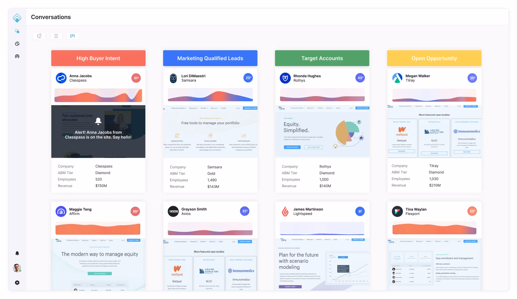Initially, Carta was using another solution to power their conversational sales and marketing program. However, it wasn’t providing enough information about who was visiting the site, their purchase intent, or if they fit Carta’s ideal customer profile. At the same time, this solution's passive interactions with site visitors weren’t capturing the critical information needed to generate more pipeline.
