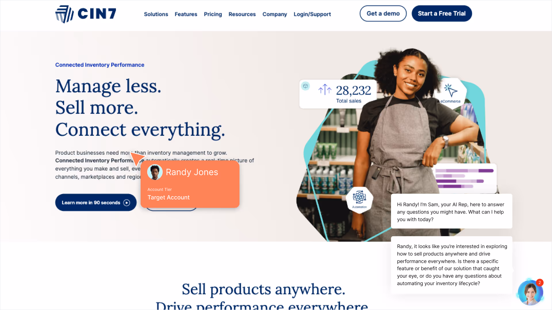 Piper is an integral part of Cin7’s inbound motion - Cin7 nicknamed their Piper “Sam.” Cin7 uses Sam to engage with website visitors in real-time, identify high-intent prospects, and schedule meetings without human intervention or requiring visitors to fill out lengthy web forms. “This approach has significantly improved our lead generation process, and we are starting to see an increase in both the quantity and quality of our pipeline in just our first month live.” With Piper handling the initial engagement, Cin7’s sales team can focus on more complex, value-driven conversations, with the goal of driving higher conversion rates at each stage of the sales funnel.