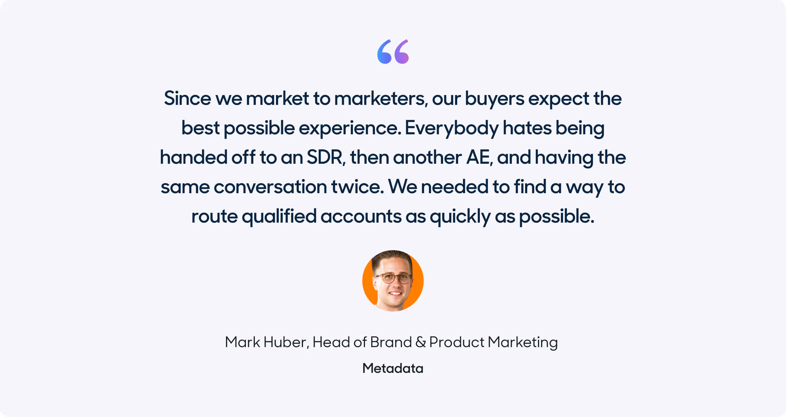Knowing their website is their number one converting channel for pipeline generation, Mark Huber, Head of Brand and Product Marketing, and his team rely on tactical, ungated content to attract roughly 35,000 monthly website visitors. Once visitors landed on their site, Metadata wanted to provide an intuitive user experience and navigation. They also needed a way to accurately identify and route qualified buyers to their dedicated account owners for real-time conversations. Unfortunately, Metadata’s previous solution, Drift, wasn’t able to distinguish visitors or route them to their assigned sales development representative (SDR).