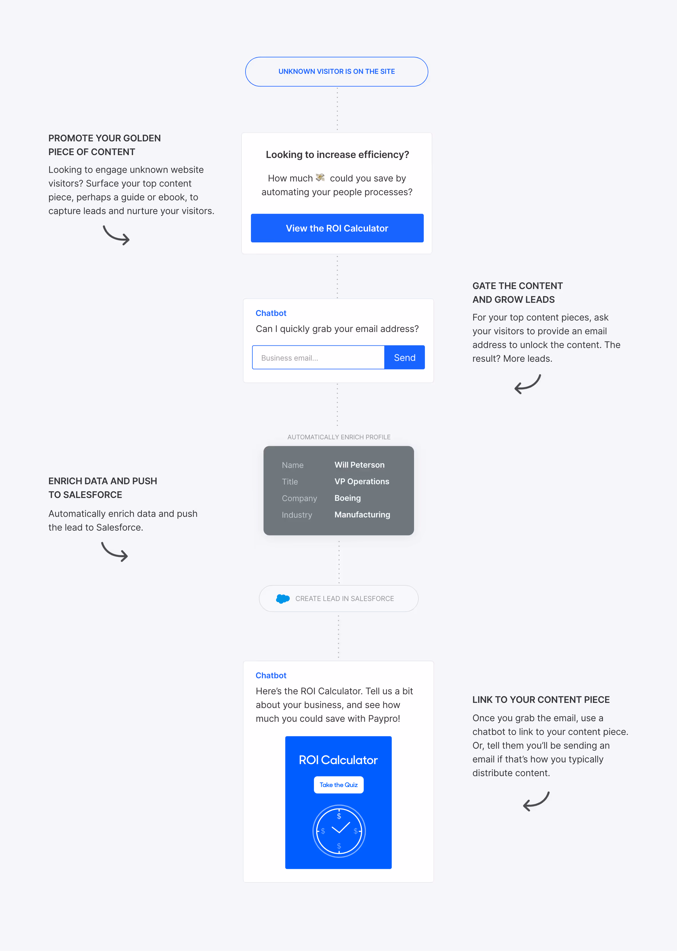 Where to use it: This can be done anywhere on the site, including your Homepage, Blog, or Resources page. Serve this bot-driven experience to unknown visitors to boost engagement, educate them about your space, and get them into a marketing nurture sequence.