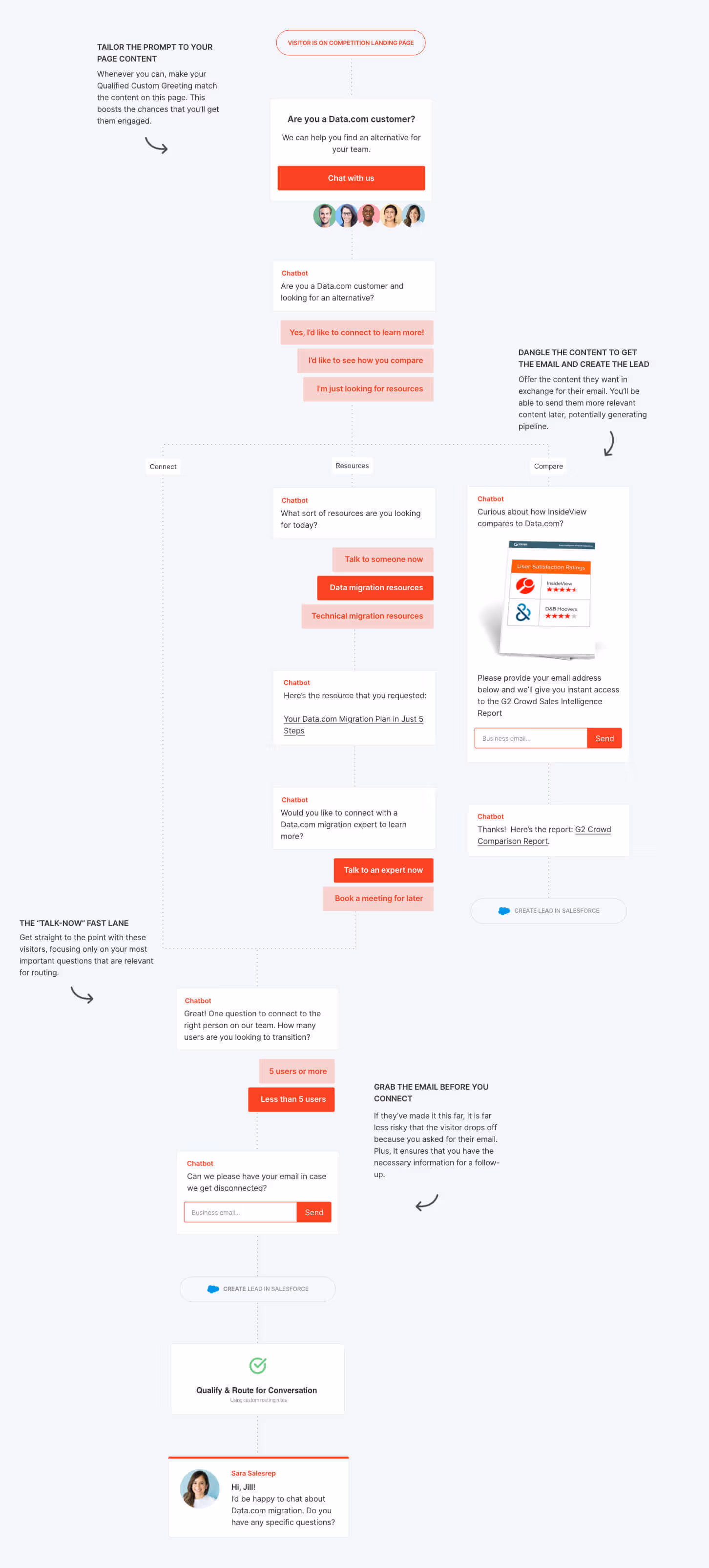 Why do it: Your team may have created an incredible competitive landing page, or you may be running a super effective ad campaign that gets a ton of traffic looking for alternatives to your competitors' products. That's awesome, but don't let that be the end of the story. The Competitive Advantage capitalizes on your visitors making it this far, and connects these interested shoppers to a person on your team.