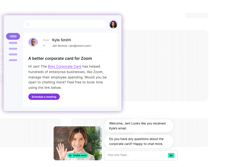 Connecting with buyers over email is a critical part of any buying experience. After a buyer clicks through a Gong Engage email, Piper is on the website ready to continue the conversation without missing a beat.