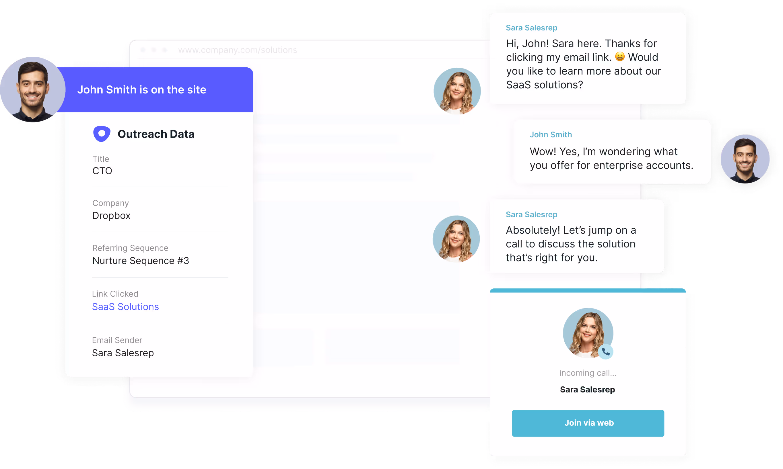 Our Qualified for Outreach integration is designed to give sales reps a modern tool in their toolkit and help them engage prospects in real-time conversations the moment they click through an Outreach email sequence and arrive on your website.