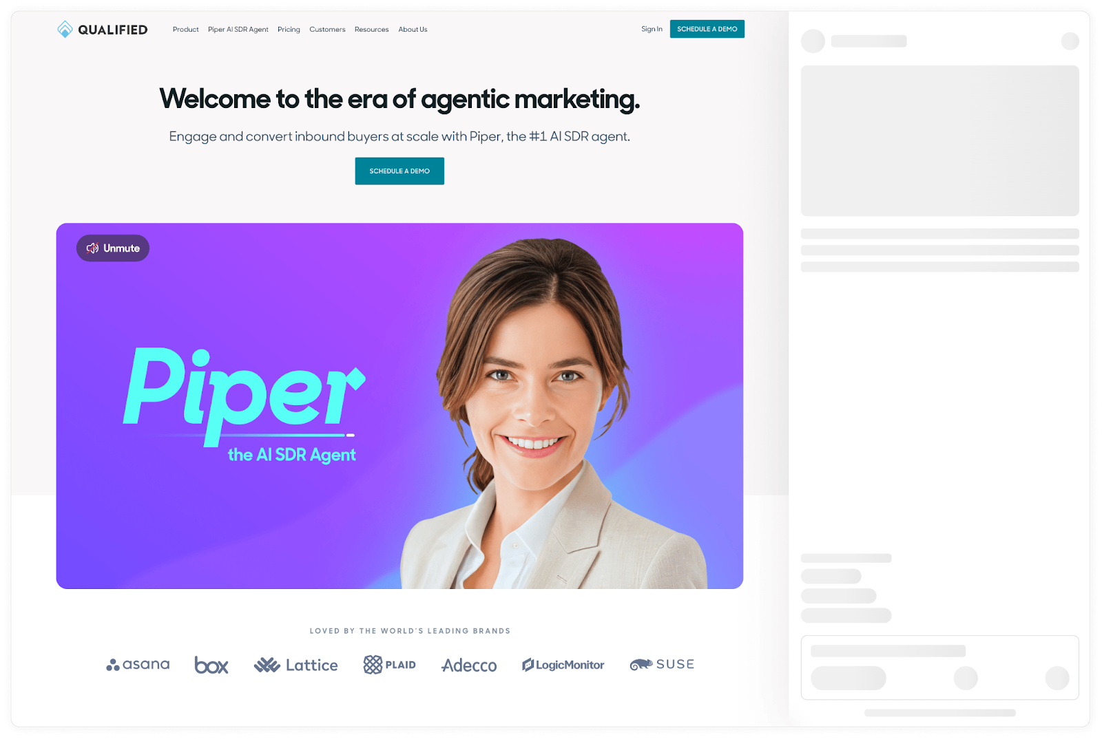 At Qualified, we call it ‘Pinned Mode.’ It’s a brand new website experience where the agent is front and center. It feels more like a concierge in a hotel lobby than a chatbot asking for your email.