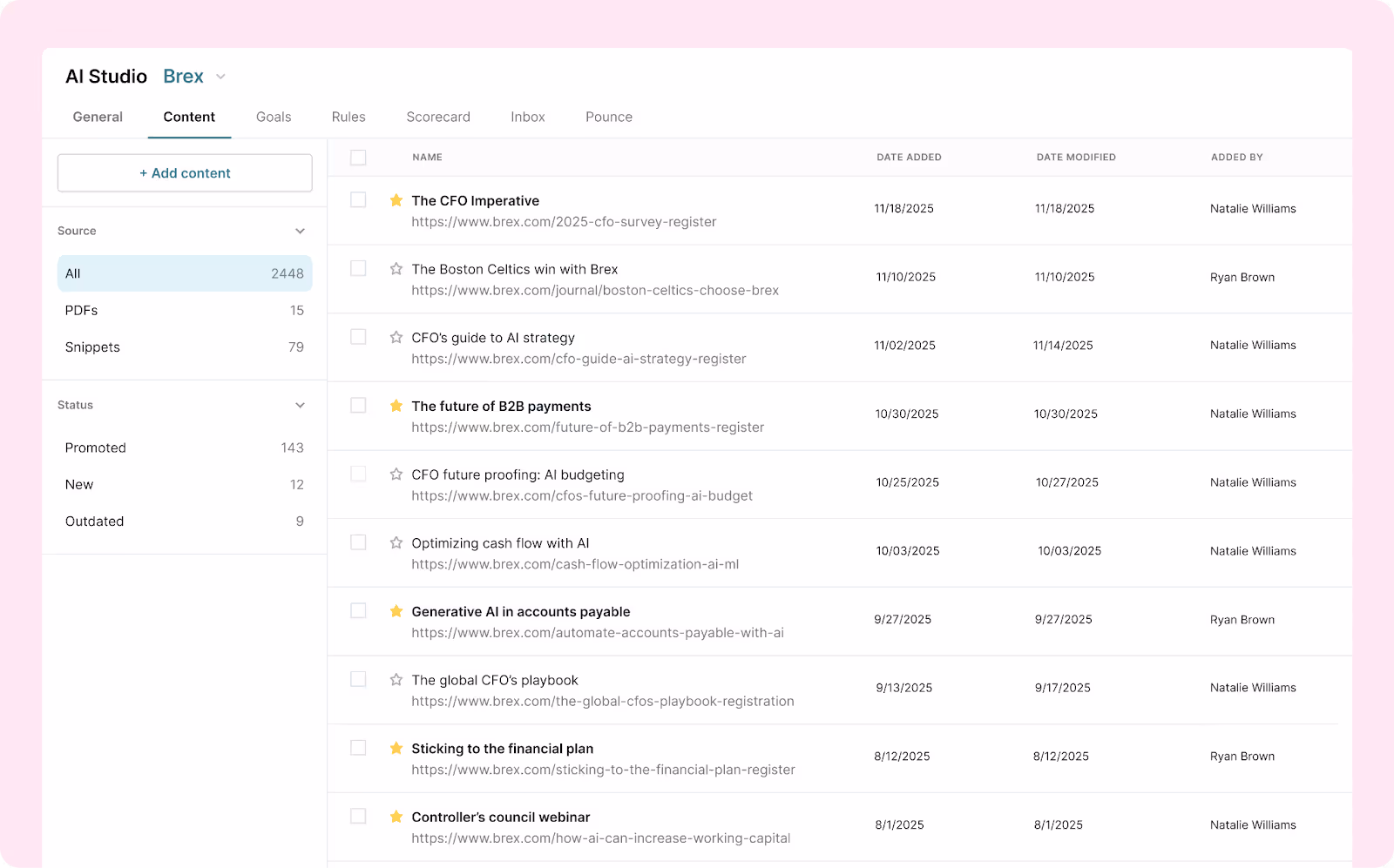 The Content Library within AI Studio got a UI/UX upgrade, designed to support scalable content management. The update offers a more organized view of your content types, new bulk actions for promotion, and better filtering based on sources and status. This ensures your team can efficiently onboard and manage Piper’s knowledgebase, guaranteeing she gives accurate and on-message responses every time. Read the help article to learn more and check out the video walkthrough.