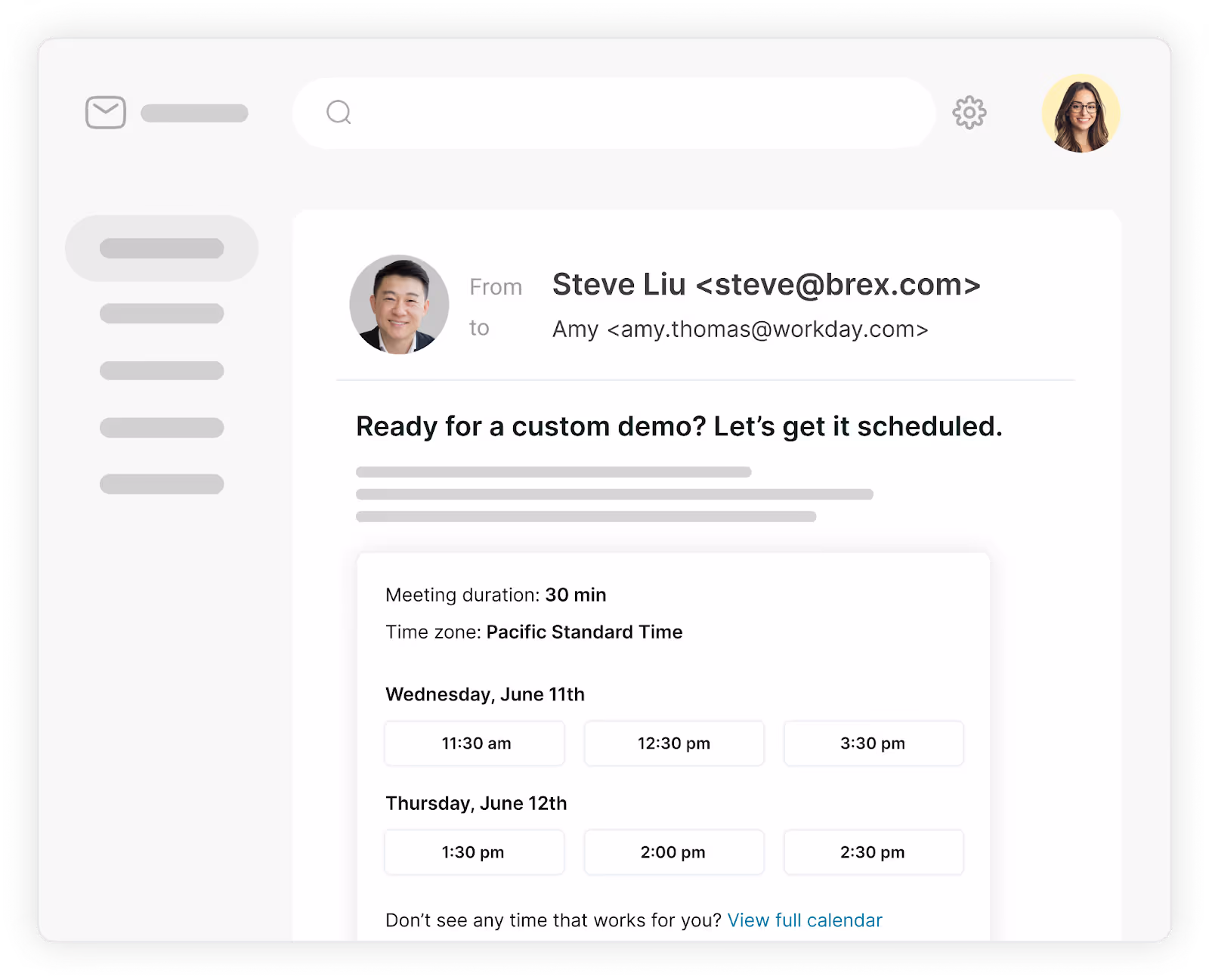 Sales reps are busy and need tools that help them move quickly. Now, with a new Chrome extension, sales reps who use Gmail can embed meeting time slots directly within an email body copy. This offers a frictionless booking experience for both buyers and sellers alike, getting a meeting on the books in just a few steps. Download the Chrome extension here and read the help article to learn more.