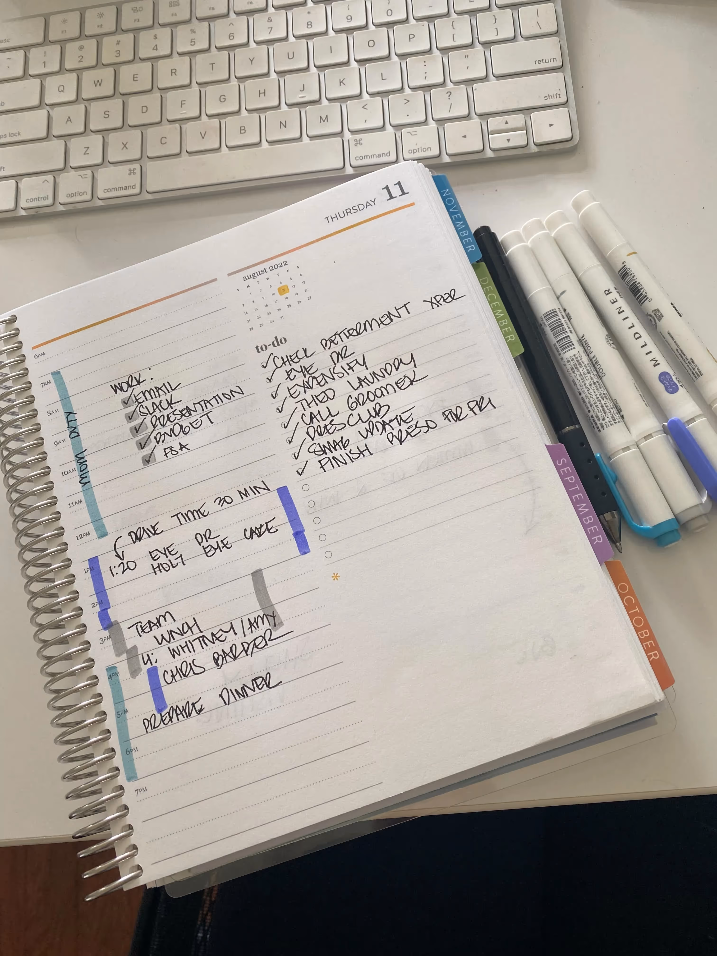 It’s worked really well and helps me visualize my day. As crazy as it sounds, if you can be really organized mentally, the rest of it just kind of falls into place.