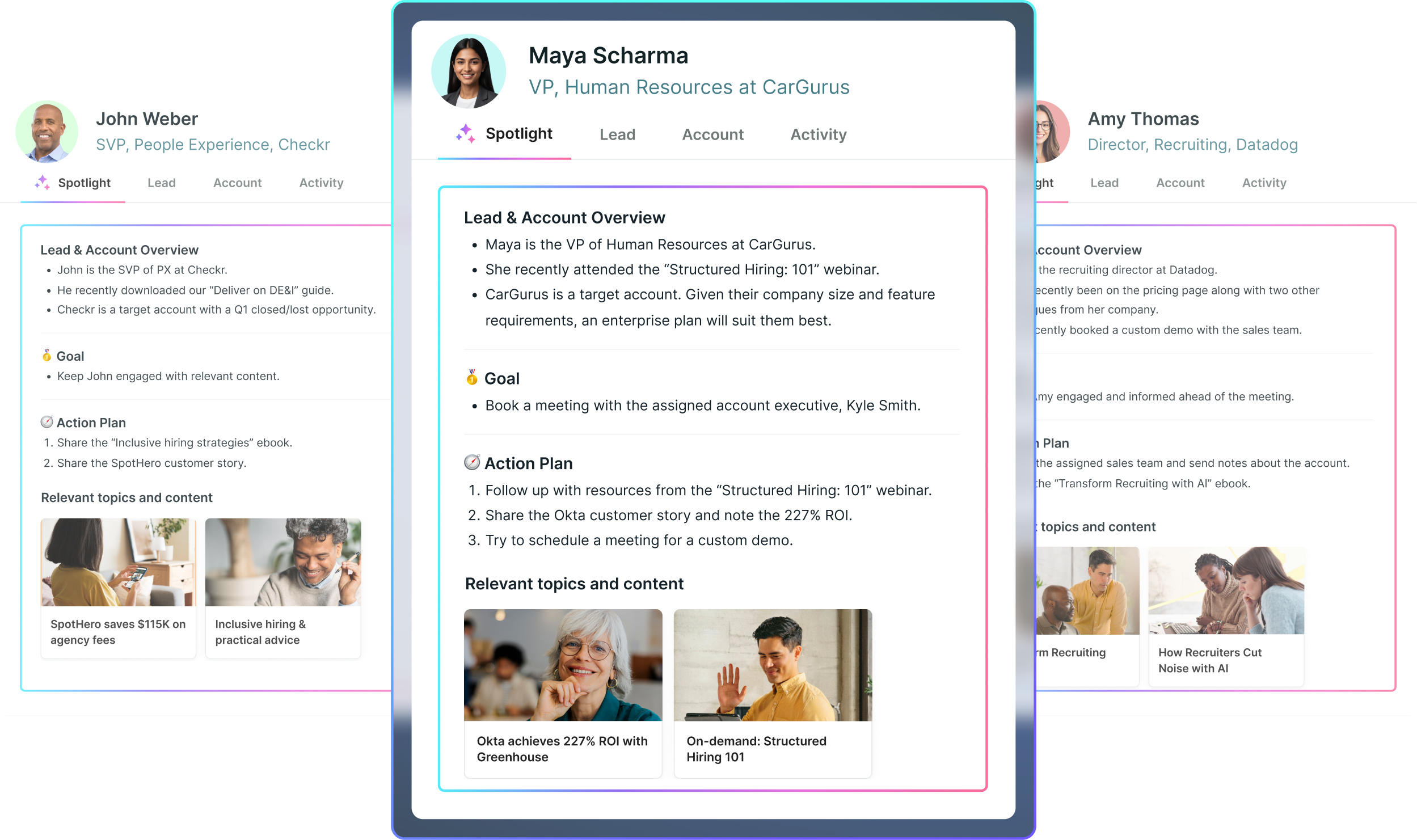 This is where your agent executes on her plan of action. She synthesizes all your GTM data as it changes in real time, then goes to work across the website and email inbox to convert buyers.