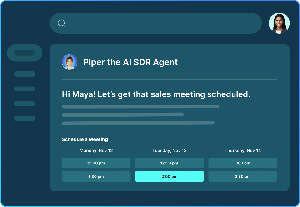 Give your agent a foundational understanding of your business with details like lead data, account segmentation, routing rules, and qualification criteria to ensure her success.